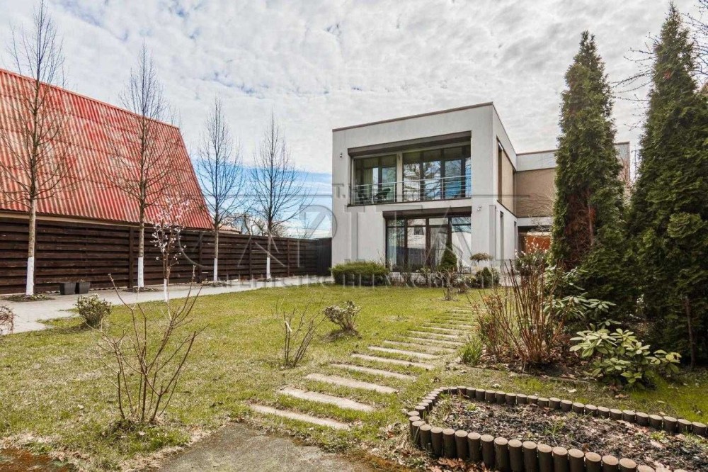 Пропонується в оренду двоповерховий сучасний будинок в Києві, загальною площею 365м2. Будинок розташований на тупиковій тихій вулиці в Шевченківському районі Києва. Ділянці 8 соток, з великою кількістью насаджень, дерев, кущів, квітів. На ділянці автонавіс на 2-3 машини, сад, дитячий майданчик. Також на ділянці є два будиночки, в одному крита зимова альтанка в якій є піч, на якій можна готувати та яка має великий теплий простір для відпочинку 2х2,5м. Другий будиночок гостьовий, в якому є спальна кімната с/в з душем та ванною, та кухонну зону. Також на ділянці є зона барбекю та ще одна літня альтанка. В кінці ділянки є власний вихід у Сирецький Гай, заповідна зона.