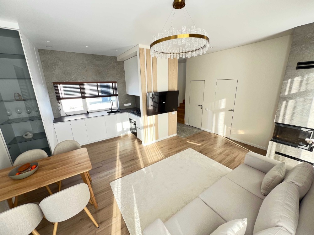 Кухня-вітальня з каміном, 4 кімнати, 2 санвузли, гардеробна.