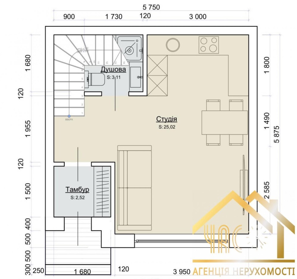 - Санвузол 1 поверху, з місцем під пральну та сушильну машинки!