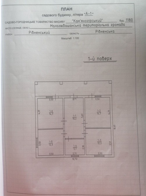 • Площа ділянки 6 сот.
