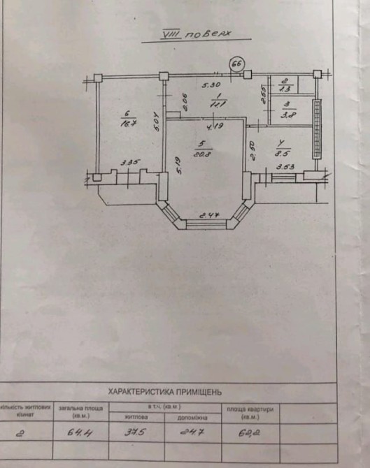 • Загальна площа 64.4 м2