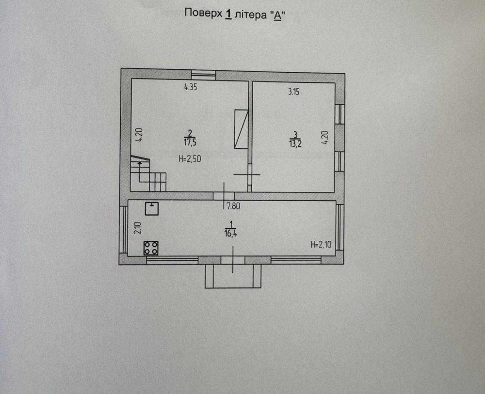 • 3 кімнати — 17.5 м², 13.2 м² та 9 м²