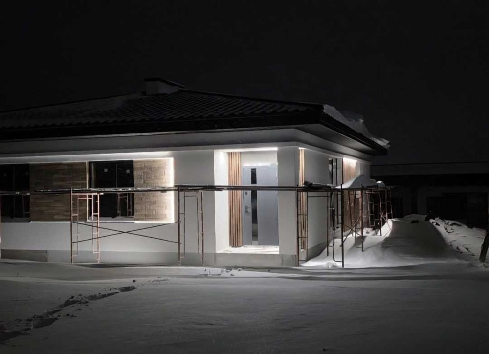 Одноповерховий будинок із продуманим плануванням: тамбур, простора кухня-вітальня, санвузол, три окремі спальні кімнати та гардероб. Комфортний формат для сімейного проживання.