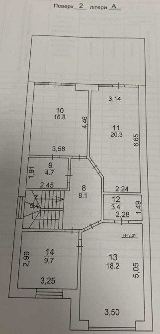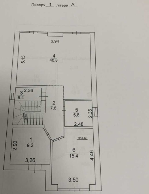 Висота стелі — 3,20 м