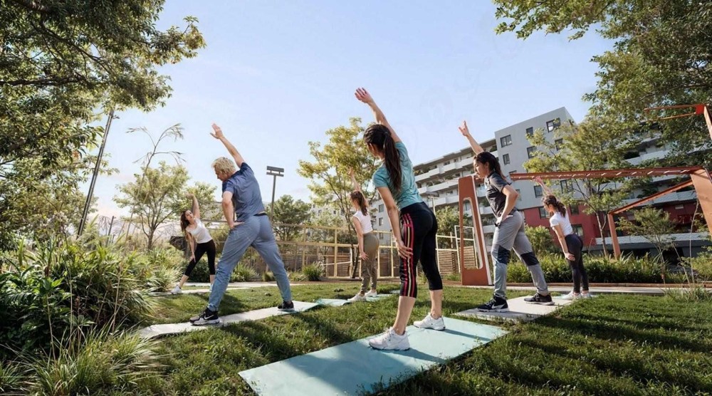 - Галереї зі зручними кріслами, зелені зони з фонтанчиками, дитячі майданчики та місця для бадмінтону