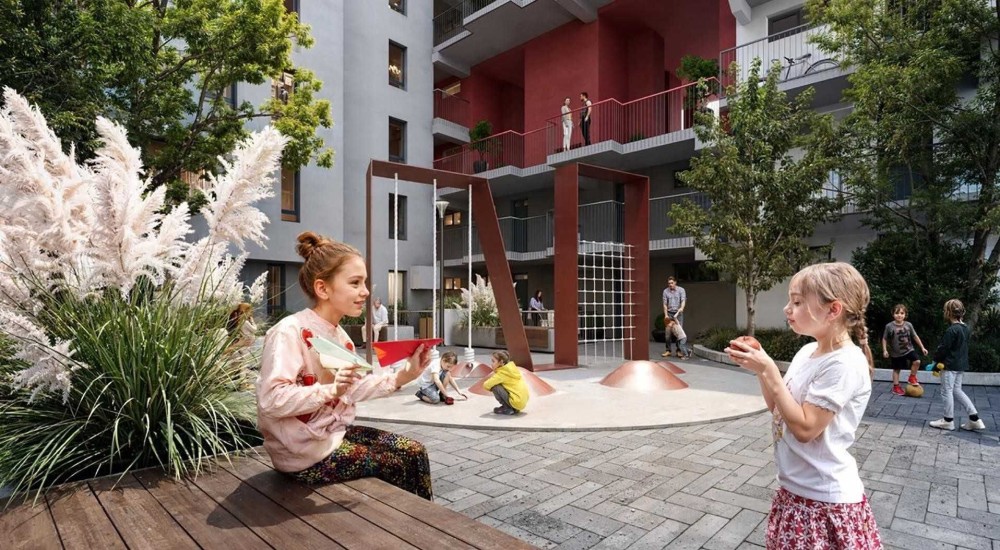 - Зовнішні фасади виконані в лаконічному стилі з яскравими акцентами, а внутрішні — у світлих, спокійних тонах. Всі помешкання з двосторонньою орієнтацією, де кухня виходить на галерею, а спальні — на вулицю або внутрішній двір.