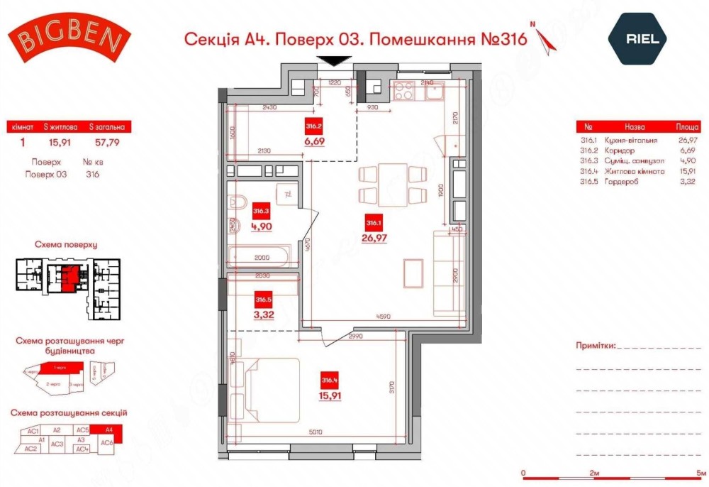 1-к Апартаменти 57.8 м² в ЖК Big Ben - Розтермінування