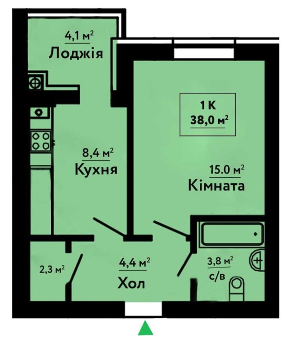 • Загальна площа 38 м2