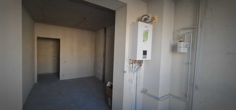 - двоконтурний газовий турбо-котел, радіатори (батареї) з розведенням по квартирі