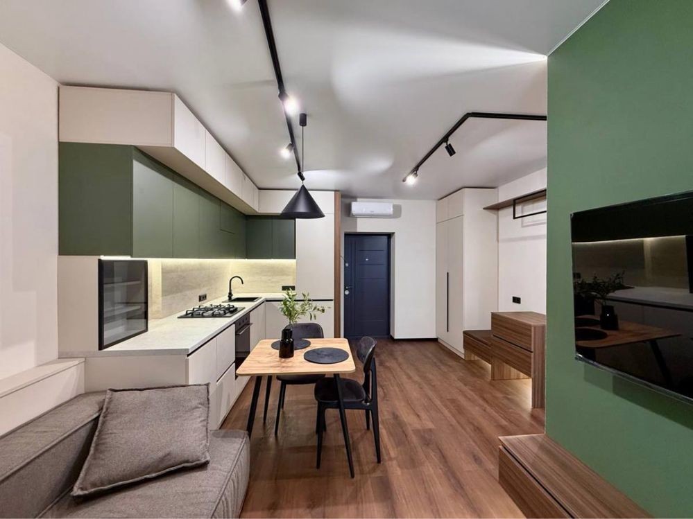 Якісний, дорогий та стильний ремонт. Комфортне планування - велика кухня-студія + окрема кімната.