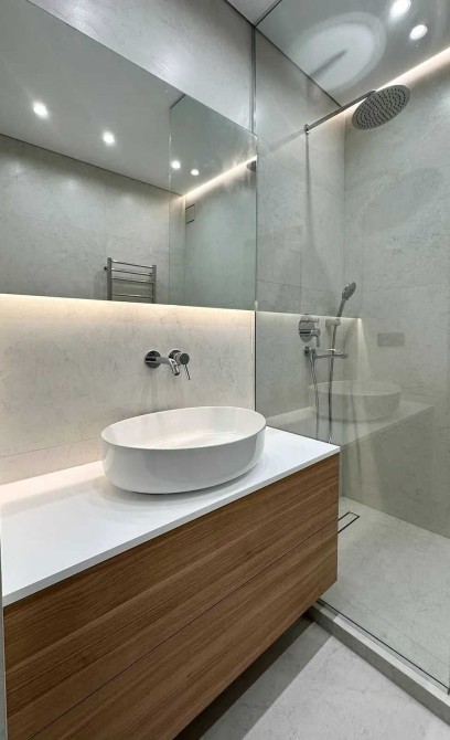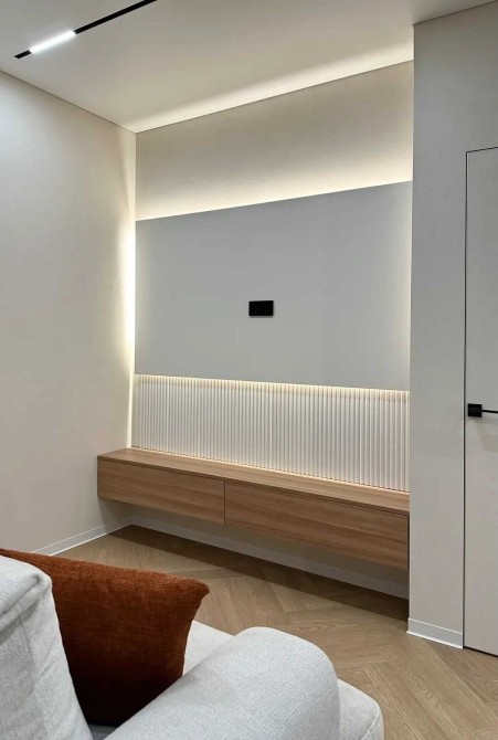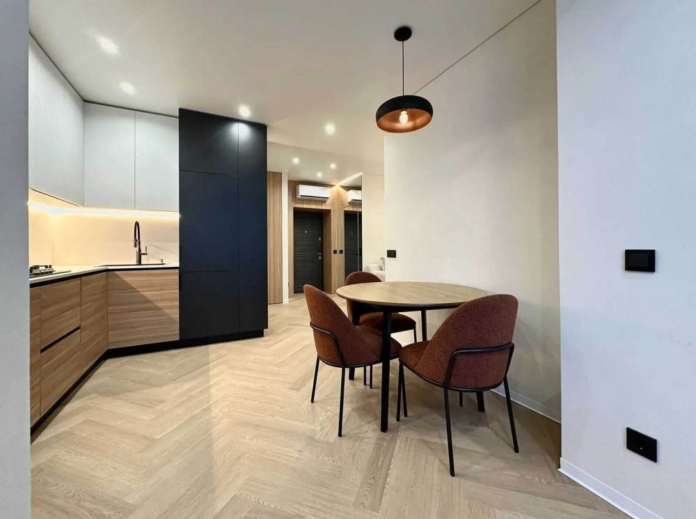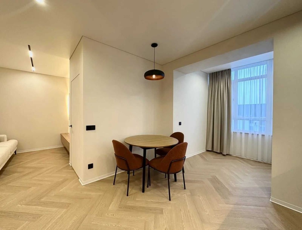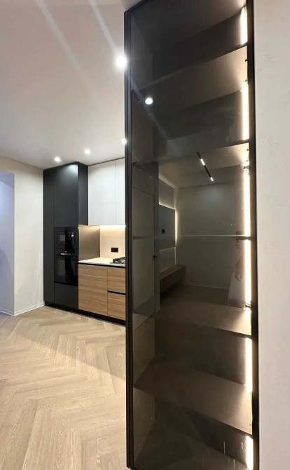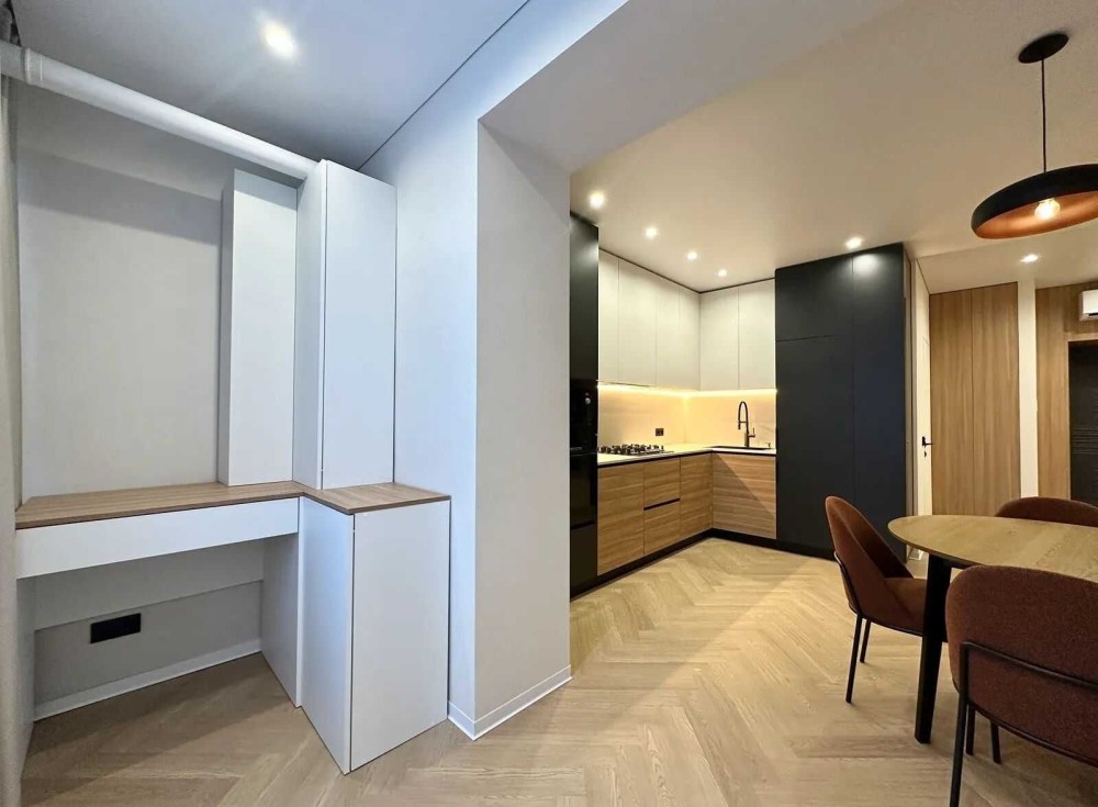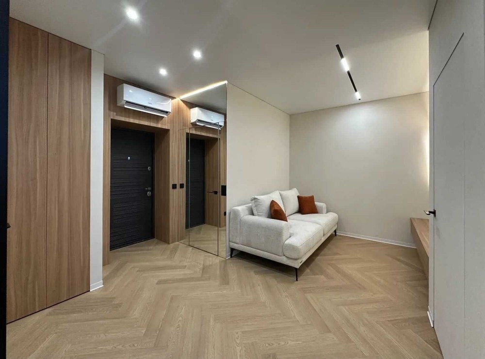 Даний ремонт виконано з високоякісних матеріалів де розумно задіяно кожен квадратний метр для мвашої зручності. На підлозі кварцвініл, по всій квартирі якісно зроблена тепла підлога. Двері прихованого монтажу. Зроблена дорога декоративна штукатурка кольору "слонова кітка". Багато підсвіток по всій квартирі, що стврою неймовірне відчуття затишку.