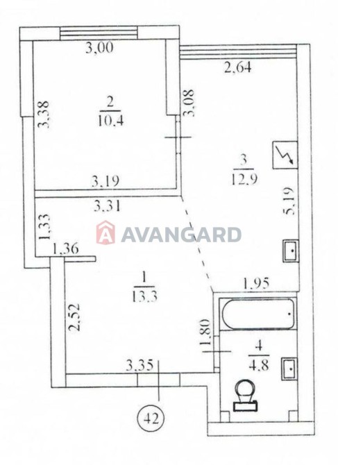 • Загальна площа 42 м2