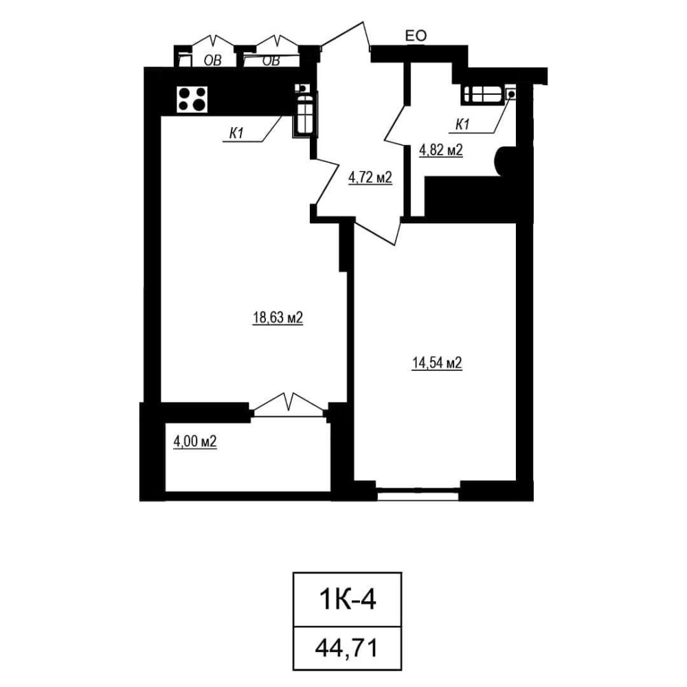 • Загальна площа 44.71 м2
