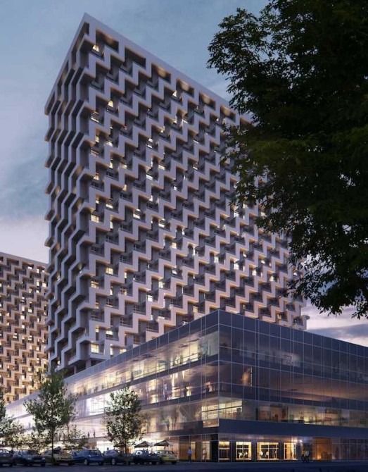 Два житлові будинки, комерційна частина – 4 поверхи, що включає різні магазини, кафе, ресторан, апартаменти, коворкінг, івент-хол, тренажерний зал, медичний центр, зелені зони, падел-корти на даху, школу, дитячий садок і багато іншого.