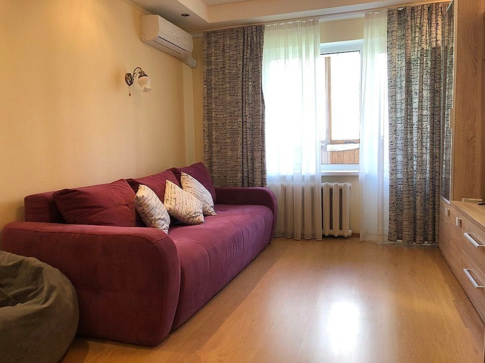 1-кімнатна квартира площею 27/15/5 кв.м. Поверх 2/5. Квартира повністю укомплектована всіма необхідними меблями та побутовою технікою. Санвузол суміжний. Встановлено кондиціонер.