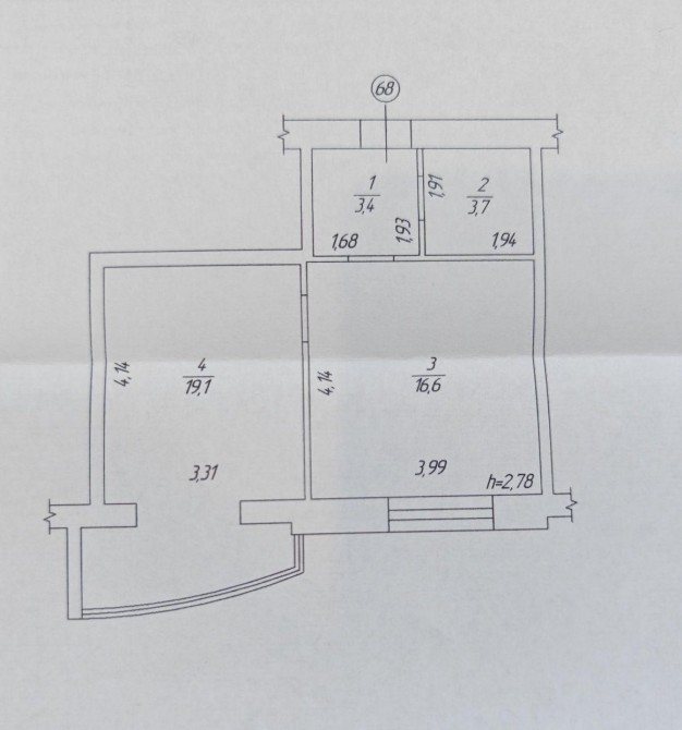 Загальна площа — 43 м², кухня — 19 м². Квартира знаходиться на 10 поверсі з 12, має нестандартне планування.