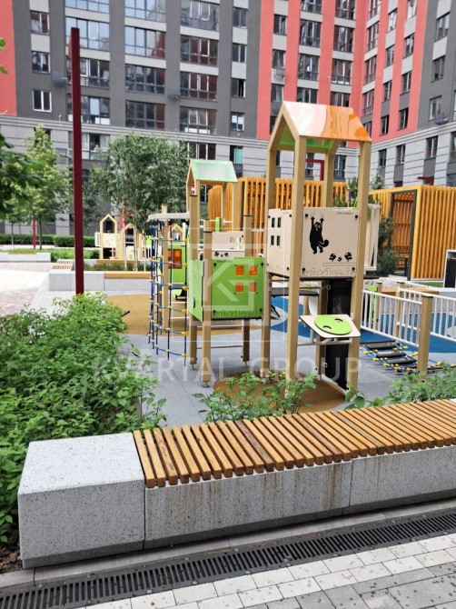 охайно облаштований двір без авто, з дитячими зонами,