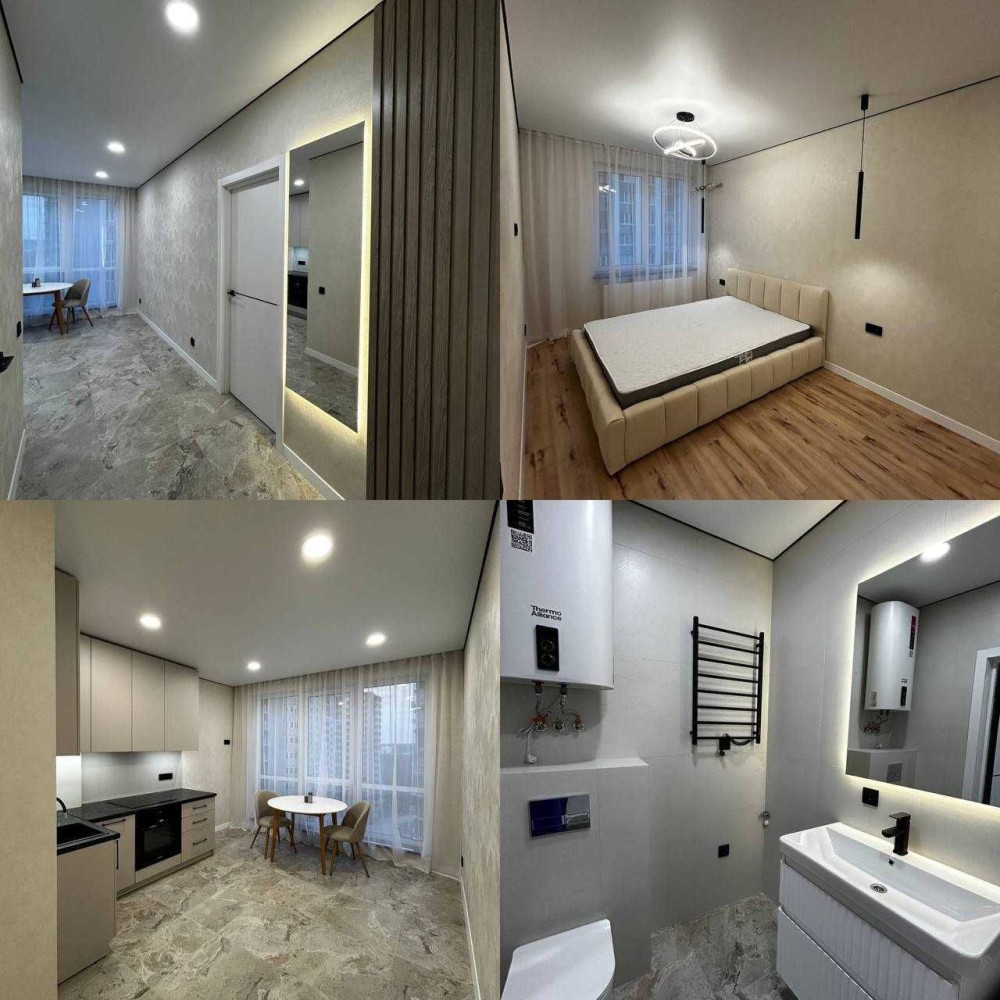 Квартира з якісним сучасним ремонтом у світлих тонах. Продумане планування та зональне освітлення створюють затишний і функціональний простір.