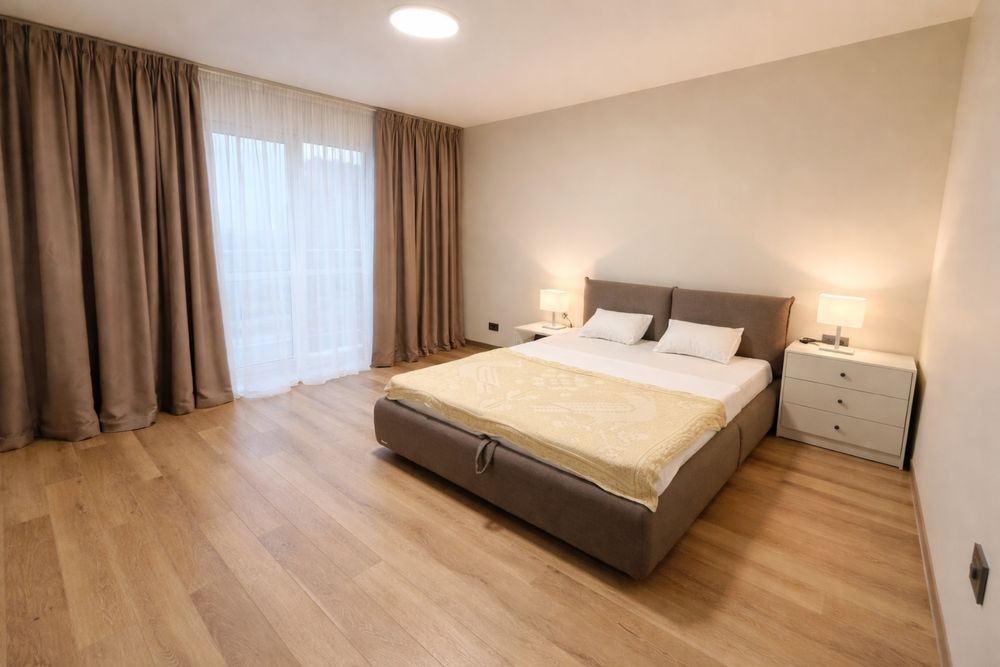 Окрема спальня з ортопедичним матрацом та blackout шторами — комфортний сон.