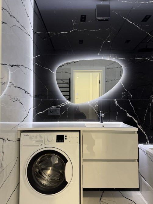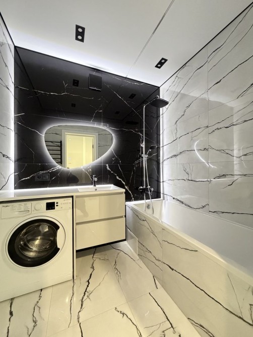 Гарне планування з Гардеробом, велика кухня з кондиціонером, спальня з ліжком, шафою, телевізором. Є підігрів підлоги у ванній кімнаті. Інтернет, домофон.