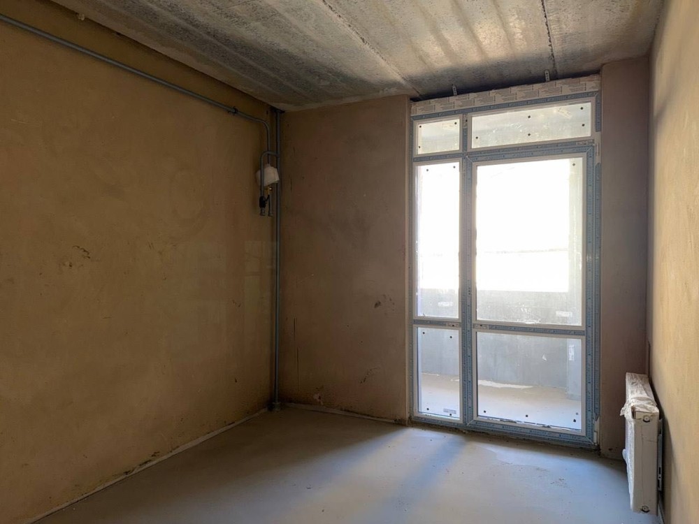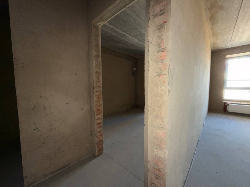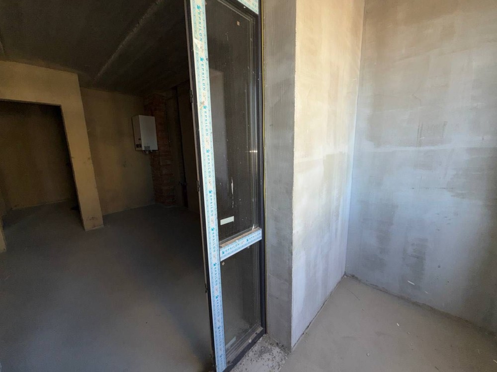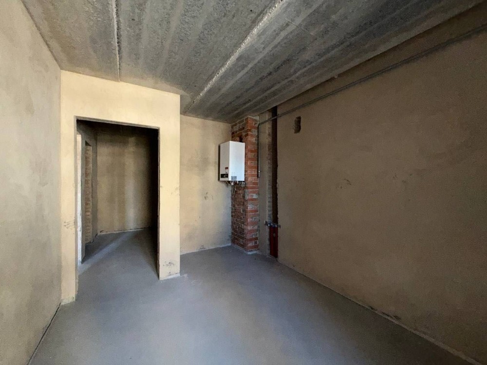 Стан після будівельників: чорнова штукатурка, чистова стяжка підлоги, встановлений газовий двоконтурний котел та встановлені радіатори. Розведені мокрі точки по квартирі.