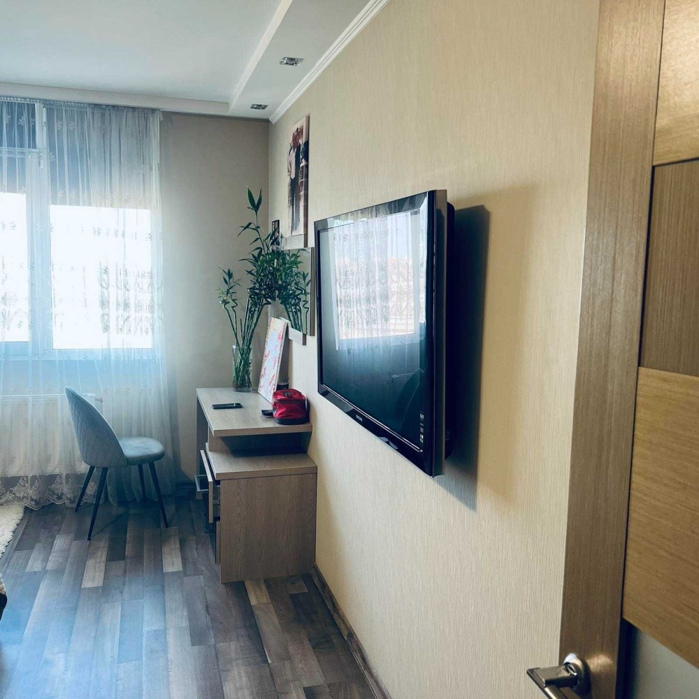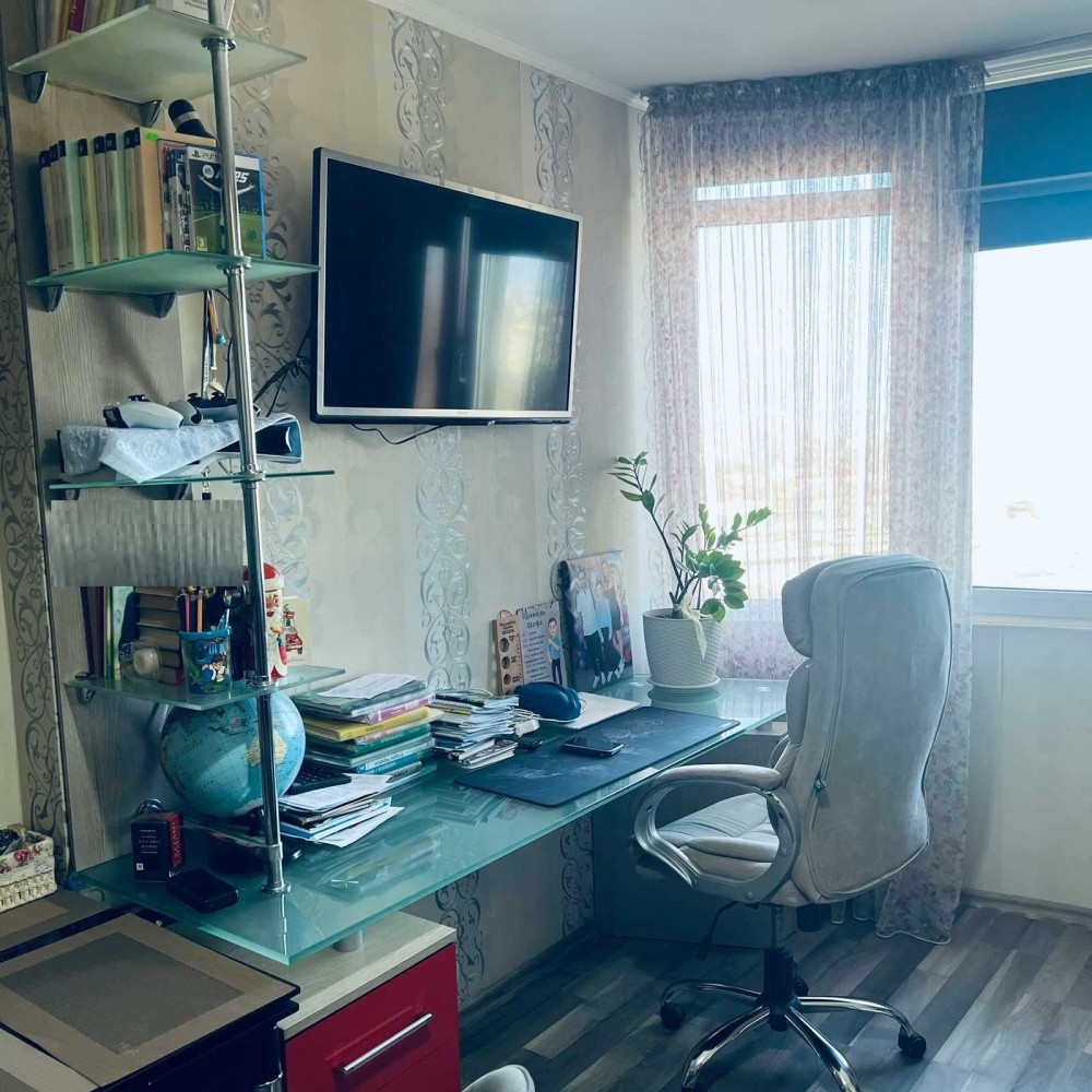 Продается уютная квартира площадью 49 м² на пересечении улиц Бреуса и Маршала Малиновского. Внутри выполнен добротный капитальный ремонт, всё продумано до мелочей. Квартира полностью укомплектована: мебель (делалась под заказ), техника (кондиционер, бойлер, холодильник, 2 ТВ) и встроенная кухня с диваном — заходи и живи!