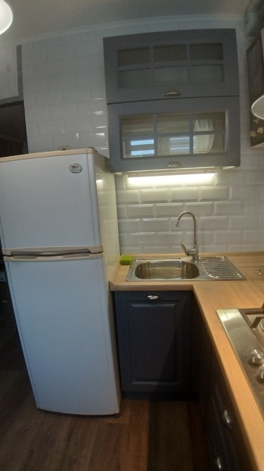3/5 этажного дома, общая 30 кв .м., кухня 6, балкон , в комнате двуспальная кровать и диван, на кухне газовая плита, горячая вода -колонка( не зависит от света! ), отопление ТЭЦ ( не зависит от света! ). Квартира очень тёплая, светлая и чистая.