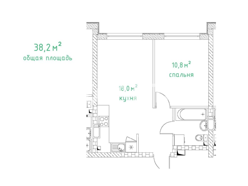 • Загальна площа 38 м2