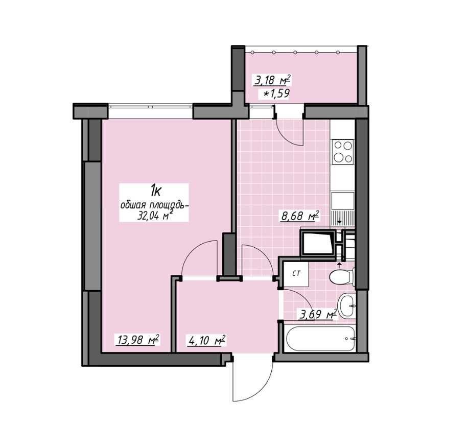 • Загальна площа 32 м2