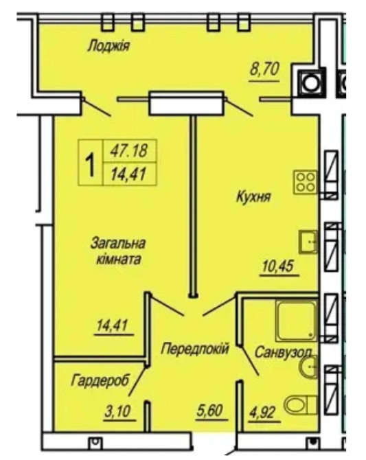 • Загальна площа 47 м2