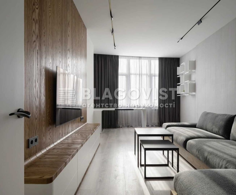 Архітектор зробив сучасний інтерєр, з відточенними деталями та без надлишкової вичурності. В зоні відпочинку використали натуральне дерево.Трекові світильники з магнітними кріпленнями дають можливість переміщати істочники світла. У ванній кімнаті-керамограніт Іспанія.