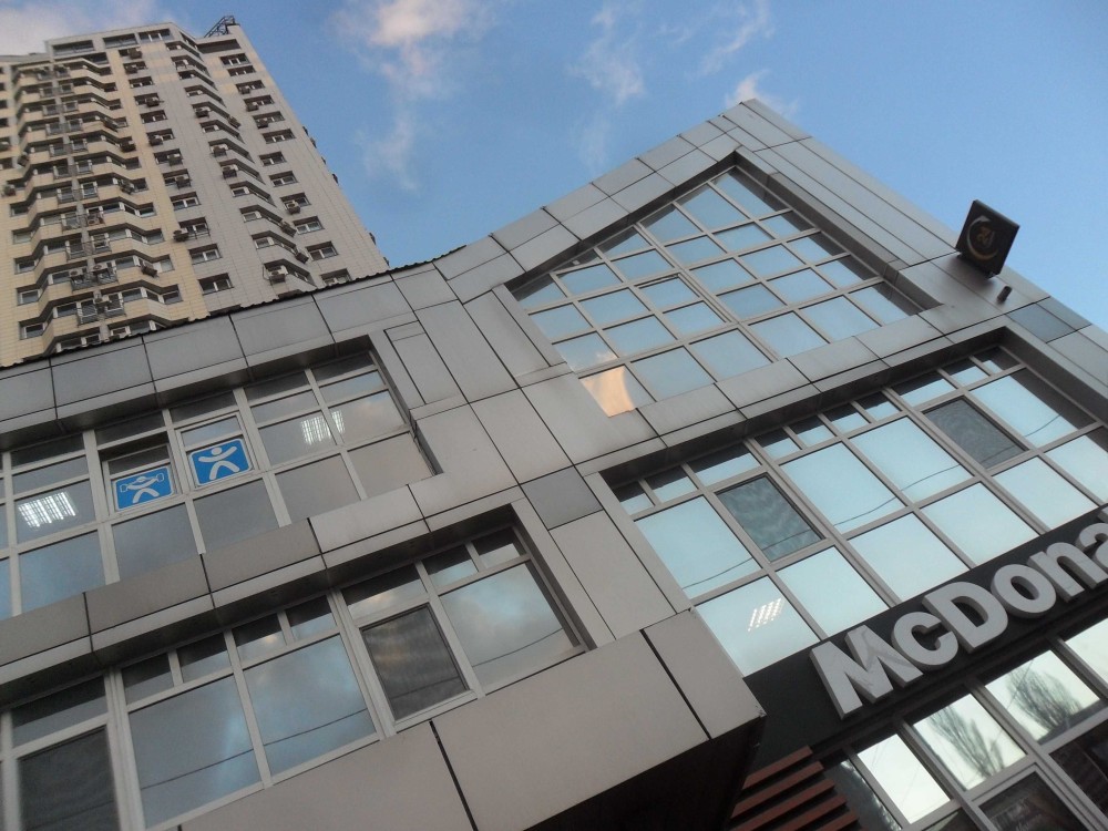 ПоРяд – ресторани «МакДональдс» і "Круасан", Мегамаркет та супермаркет «Сільпо», у дворі — сквер з фонтаном, через дорогу – парк та ТРЦ «Космополіт».