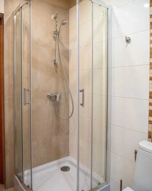 Общий санузел на 3 комнаты с душевой кабиной бойлером и стиралкой.