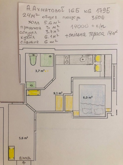 Ціна: 14 700 грн/міс + страховий внесок (14700 грн, повертається)
