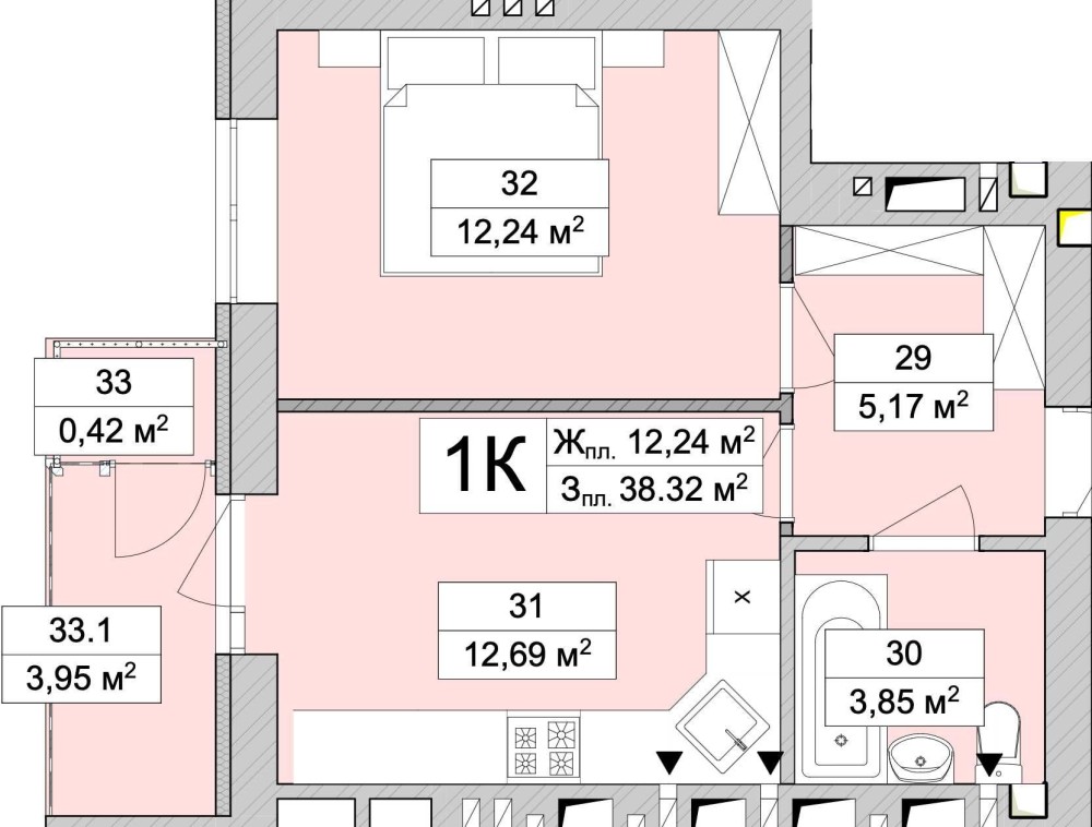 • Загальна площа 39 м2