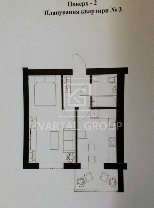 Площа: загальна 39 м², житлова 15 м², кухня 15 м².