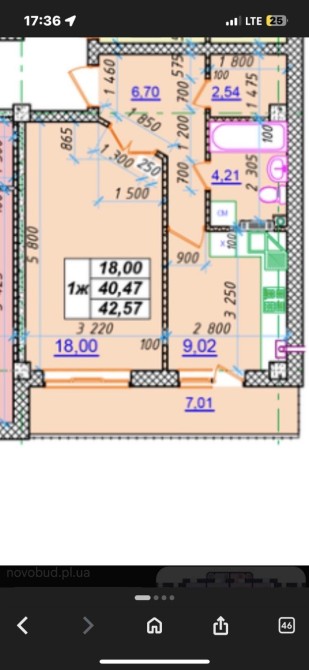 Загальна площа 43 мг. Великий балкон площею 7 м3, який можна облаштувати як