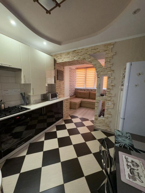 У квартирі виконаний сучасний ремонт, встановлена кухня з технікою, багаторівневі стелі з підсвіткою, якісне покриття підлоги.