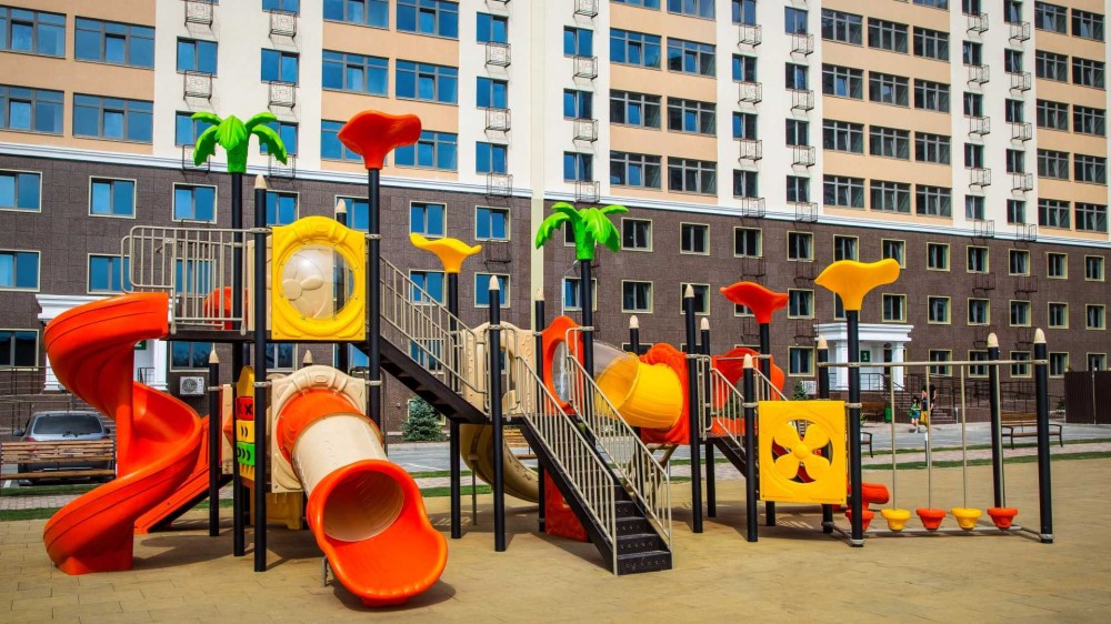 Безопасная большая детская зона с каучуковым покрытием.