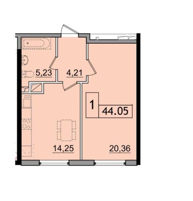 • Загальна площа 43.5 м2