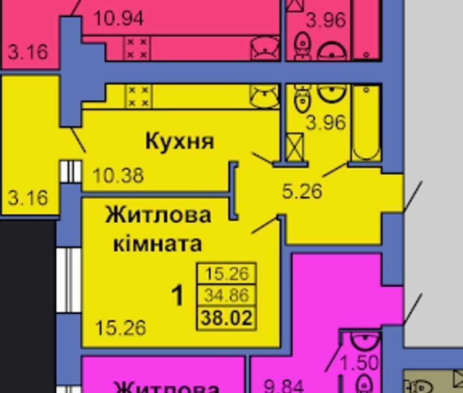 • Загальна площа 38 м2