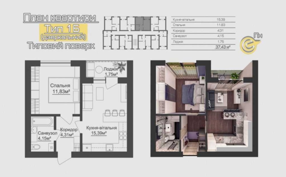 • Загальна площа 37.43 м2