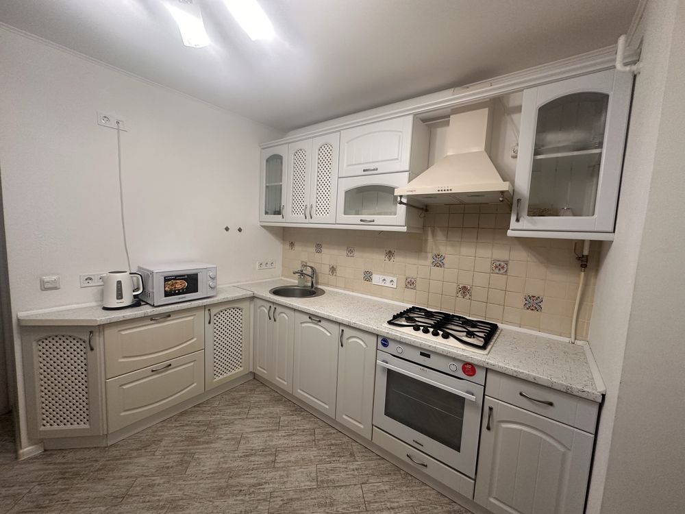 Ул. Б. Мартоса 4А, 3-к квартира в 5 минутах ходьбы до станции метро Левобережная (красная линия). Ухоженный микрорайон, развитая инфраструктура. Квартира на 2/9-эт. дома, лифт, домофон, парковка, 2 балкона, окна выходят во двор и в сад, тихо - нет шума автотранспорта. Стандартная планировка с двумя отдельными спальнями и гостиной, раздельный санузел, кухня с газовой плитой, СВЧ печью, стиральной-автомат, посудой. Установлен электро-бойлер, есть интернет (работает при отключениях света) и WI-FI роутер, 76 каналов ТВ. Квартира удобная для жизни. Цена за месяц 17000 грн. + коммунальные, моб. 063-106 23 59, 067-703 77 83, Оксана, хозяйка