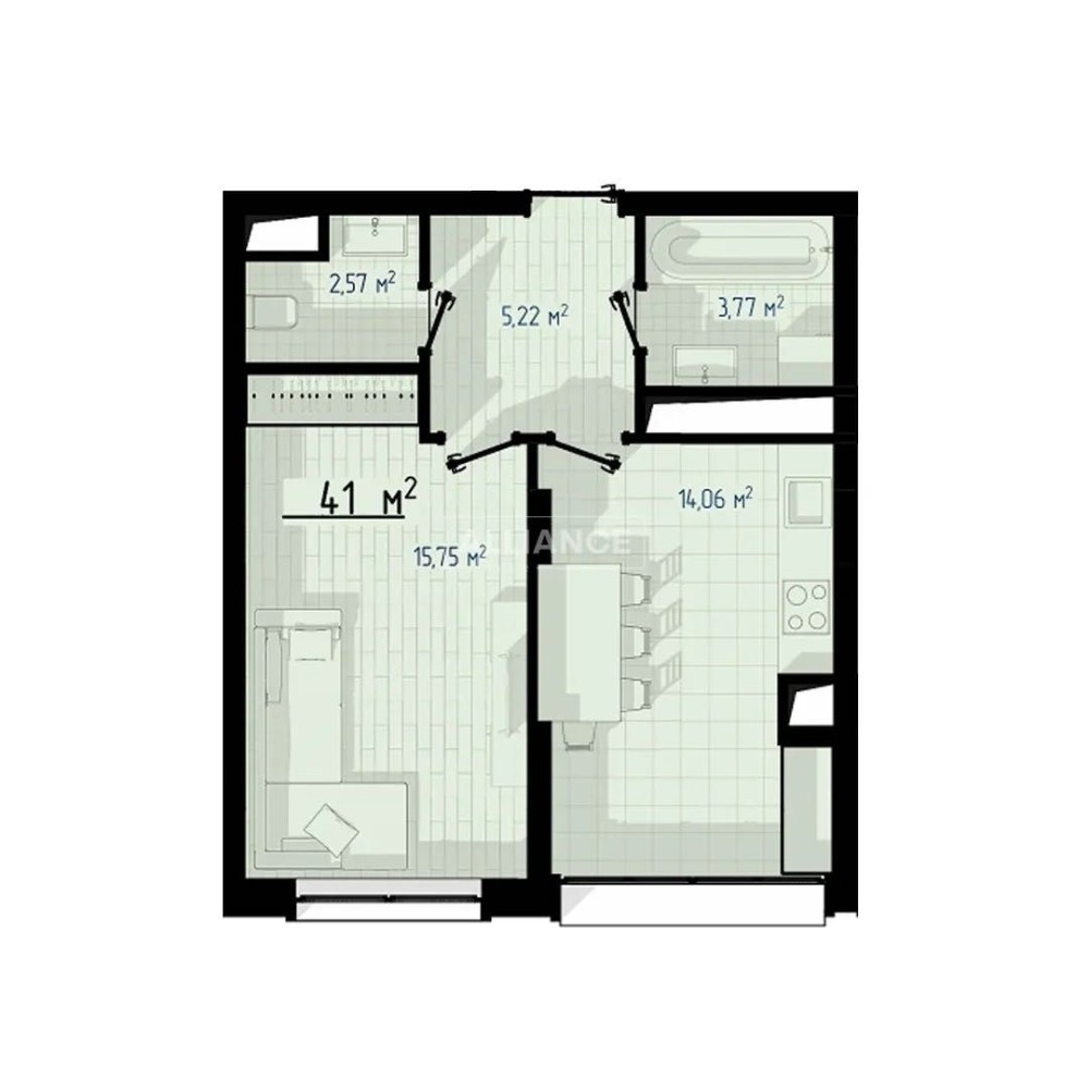 • Загальна площа 41 м2