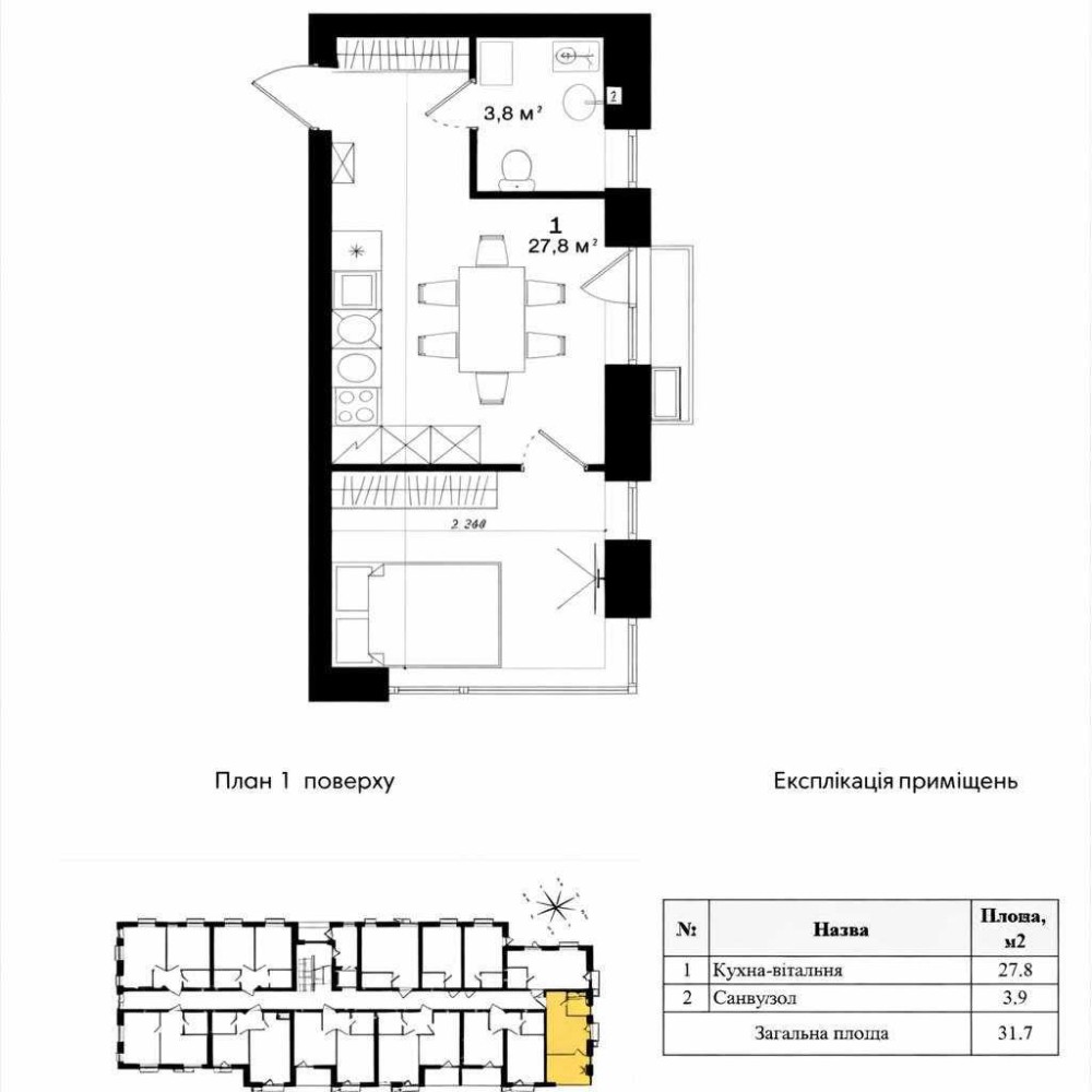 Площа: 31,7 м²