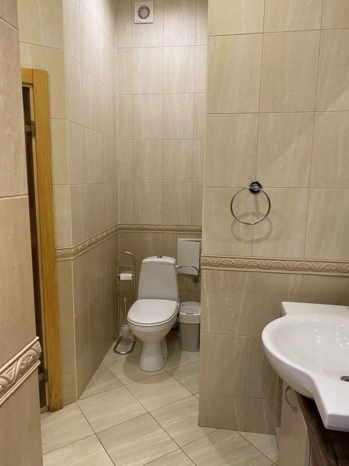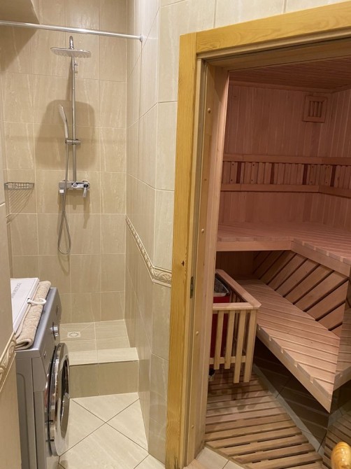 Изюминка квартиры встроенная сауна в ванной, которую можно использовать прямо по назначению либо как дополнитеньное пространство для хранения.