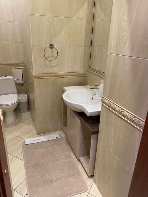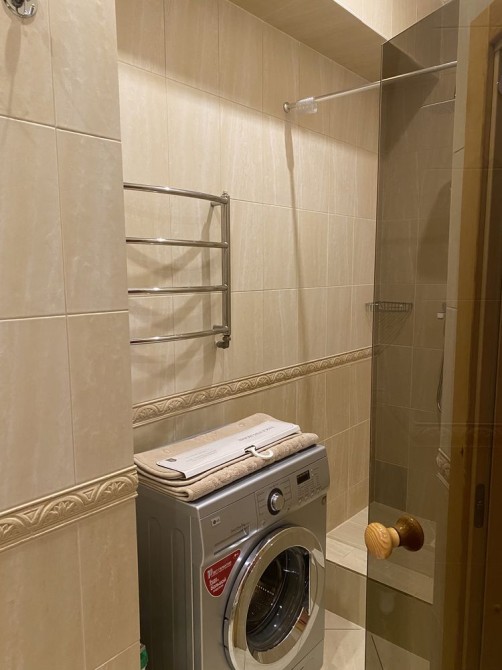 В квартире есть все необходимое для проживания: кровать с ортопедическим матрасом, большой шкаф купе, стирально/сушильная машина, кондиционер, холодильник, микроволновка, електрический чайник. По запросу посуда и постельные принадлежности.