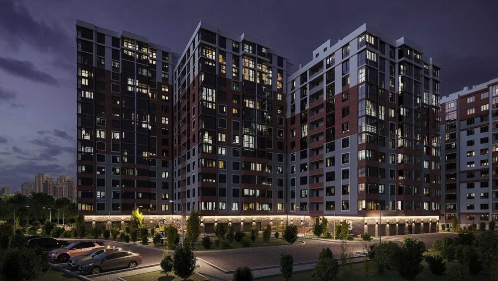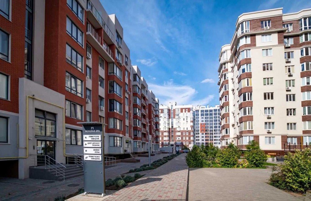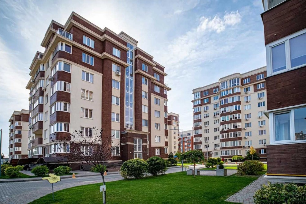 Закритий житловий комплекс із охороною та доглянутою територією.