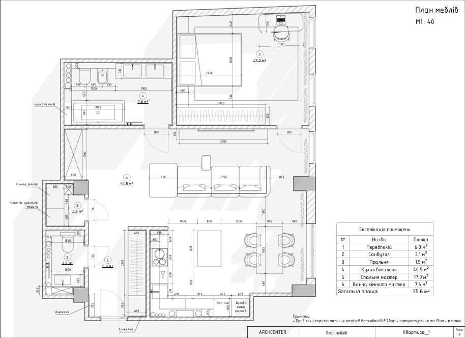 • простора кухня-вітальня 40,5 м²