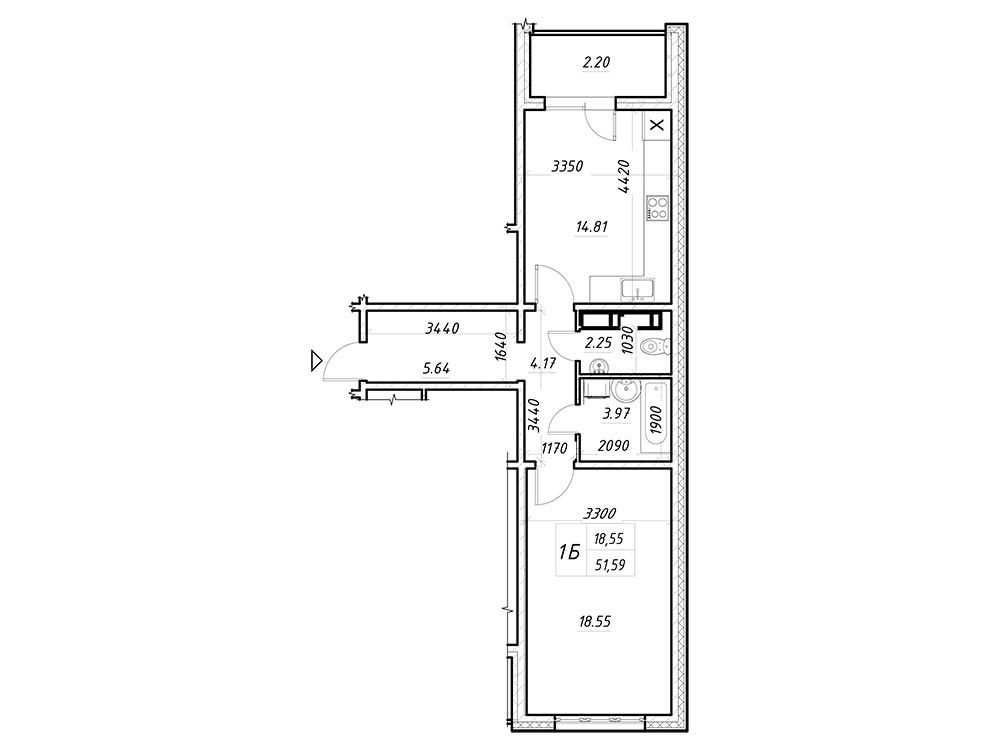 • Загальна площа 51.59 м2